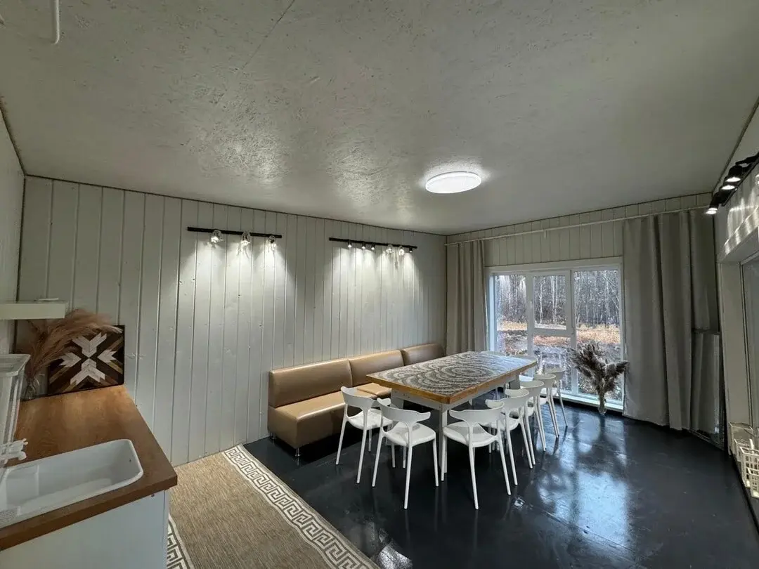 Территория базы отдыха позволяет двигаться по кругу. Можно пройтись вдоль воды, выйти к лесу, посмотреть на окрестности, потом вернуться в тёплую беседку или в домик, согреться чаем, пообщаться и снова выйти на снег. Такой формат помогает избежать ощущения, что весь день прошёл только на кухне и в парилке.