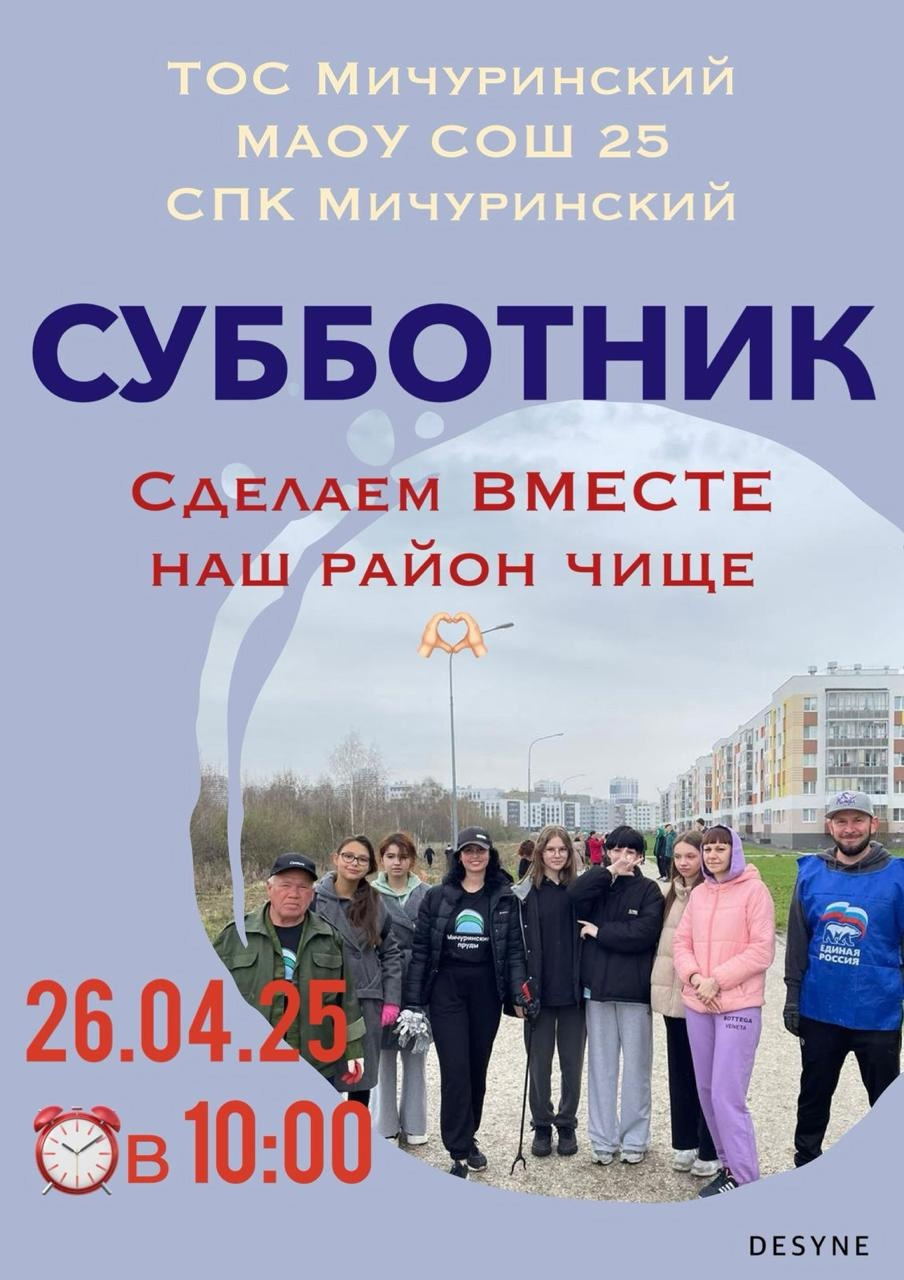 Присоединяетесь к субботнику, организованому ТОС Мичуринский, СПК Мичуринский, МАОУ СОШ 25